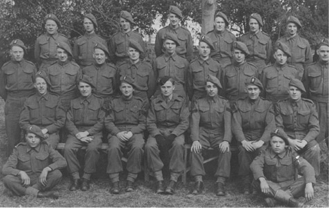 | 18th Platoon 'D' Company 2nd Battalion Royal Ulster Rifles - Hawick - 1944 Back Row - Rifleman Harry Brown ; RFM Stevenson ; RFM Desmond Bradley ; RFM Jack Allshire ; RFM Richardson ; RFM Gallagher ; RFM Lomax Middle Row - RFM Richard Keegan ; RFM Rawnsley ; RFM Williamson ; RFM Bradley ; RFM Faulkner ; RFM McAllister ; RFM Smythe ; L/Cpl O'Halloran Front Row - L/Cpl McIlroy ; Cpl Killeps? ; Sgt Teague ; Lt H Greene ; Cpl Kohler ; L/Cpl Fitzgerald ; L/Cpl Houghton Sat at Front: ?????? ; RFM Smith Signal Platoon 2nd Battalion Royal Ulster Rifles - Hawick - 1944 Front Row - Third from left - Sgt David Taylor Lt F W McFaull in centre |